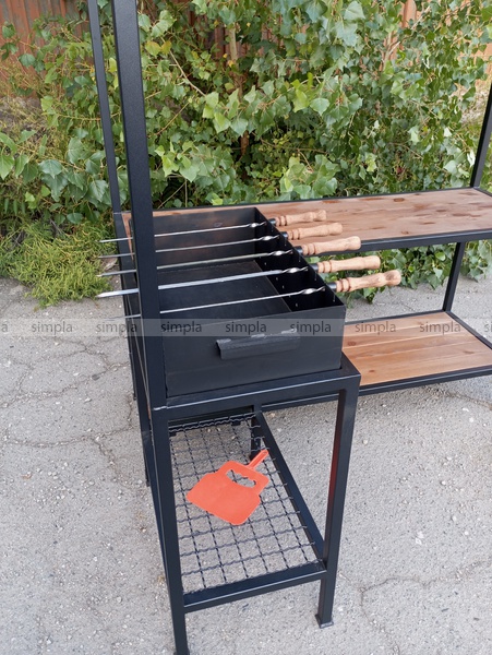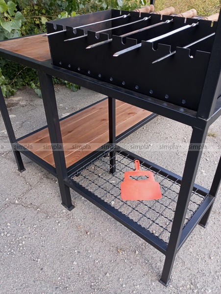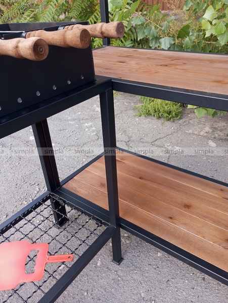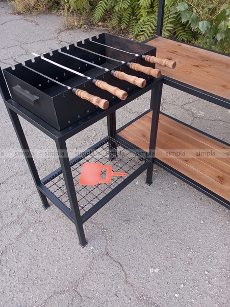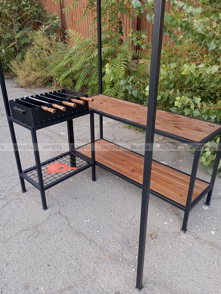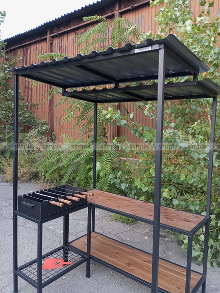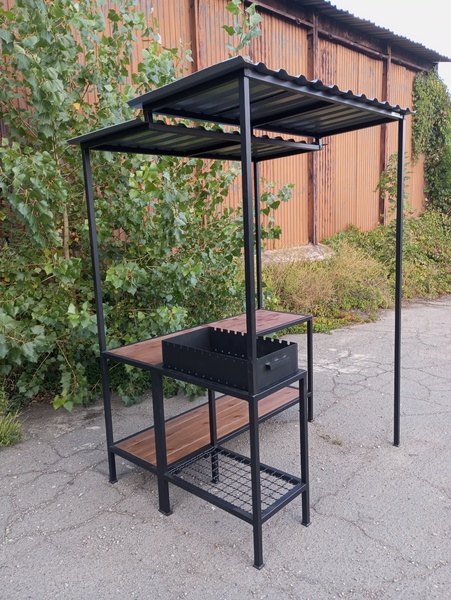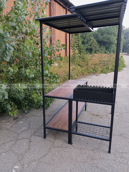 Мангал стаціонарний знімна жаровня, зі столами , навісом та дровницею
