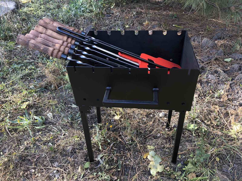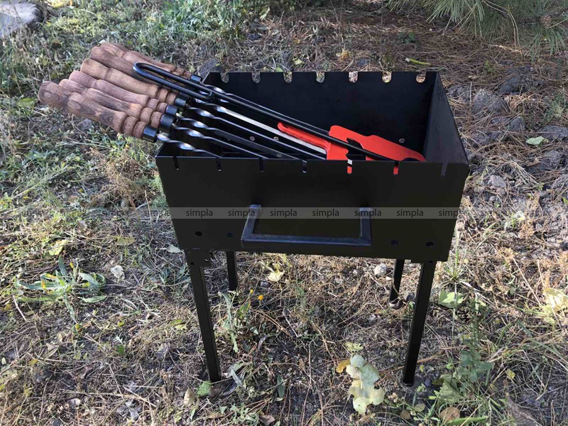 Ж: В170мм * Д420мм * Ш300ммВисота ніжок 400ммПовна висота 580ммПазів 7 під шампуриТовщина жаровні 3ммВага 9,5кг